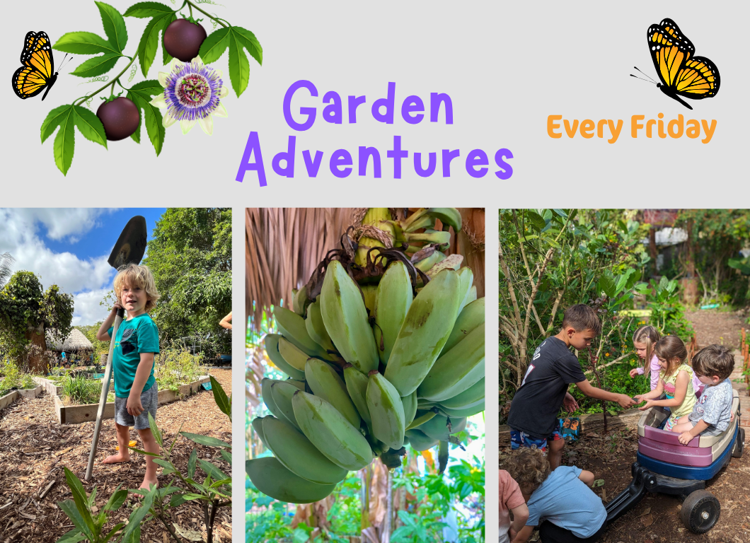 Please bring a change of clothes for your child, shoes for walking in mulch, a refillable water bottle, nut-free snacks, sunscreen, bug spray, and a changing mat if needed. Children should wear comfortable clothing that can get dirty.